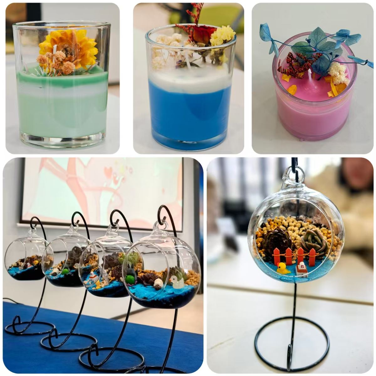 走進活動現場,清雅的香氣撲面而來。長桌上整齊擺放著蠟材、干花、苔蘚綠植等手工材料,一切都顯得寧靜而美好。在專業非遺手工藝老師的悉心指導下,大家開啟了傳統非遺文化的體驗之旅。